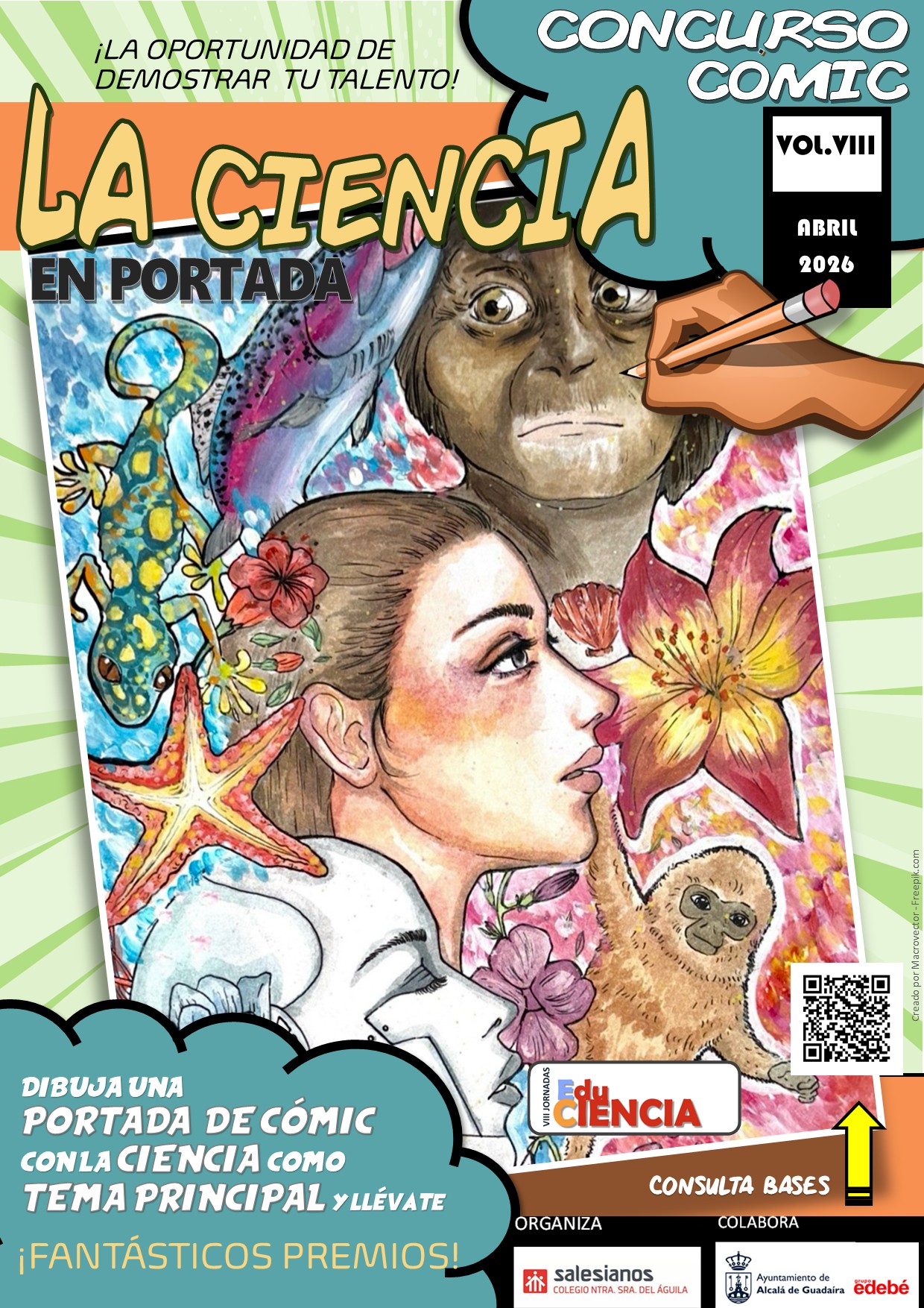 - 2º Premio: lote de libros de la editorial EDEBE, diploma acreditativo y publicación de la obra en redes sociales temáticas de cómic científico.